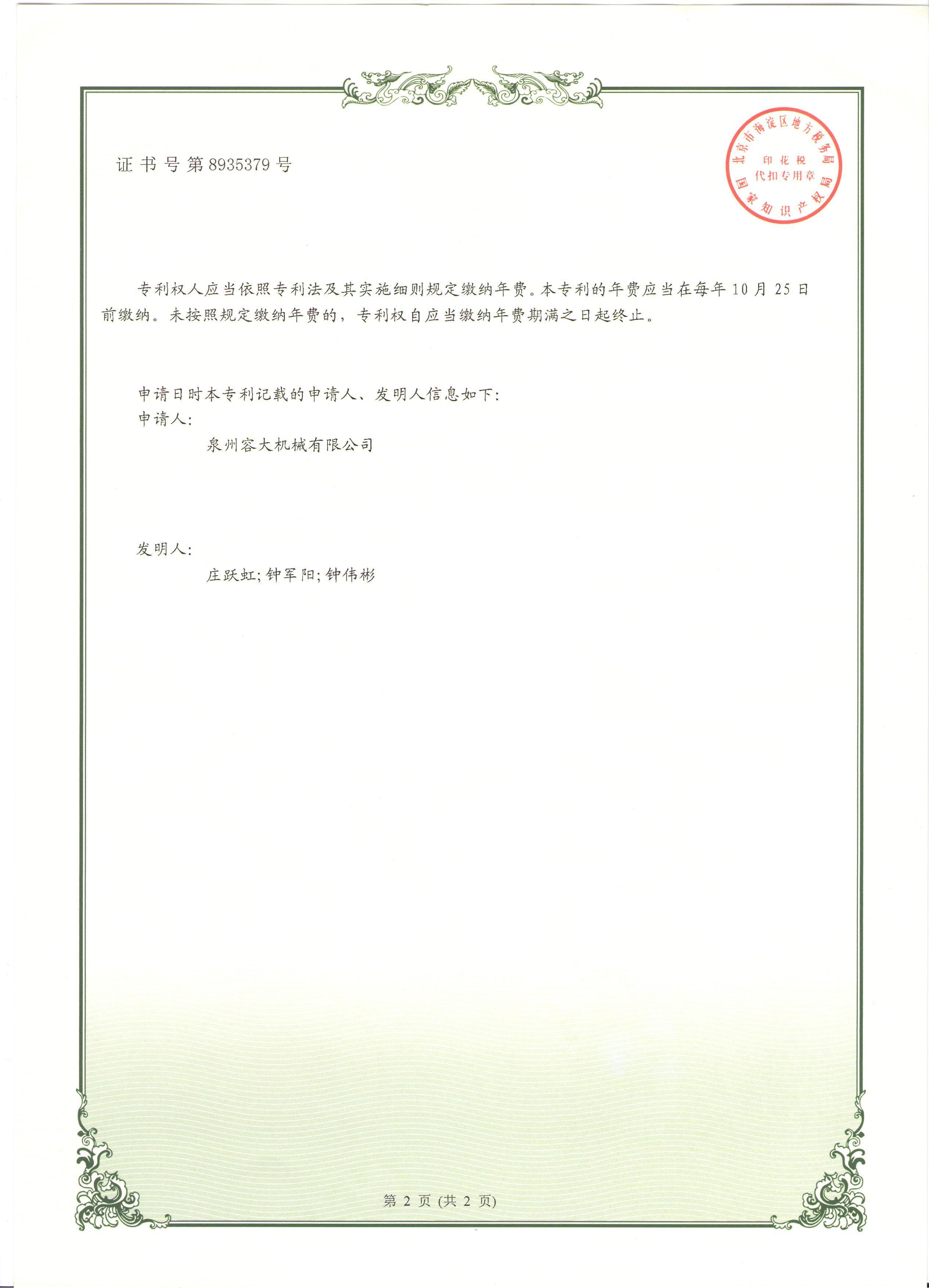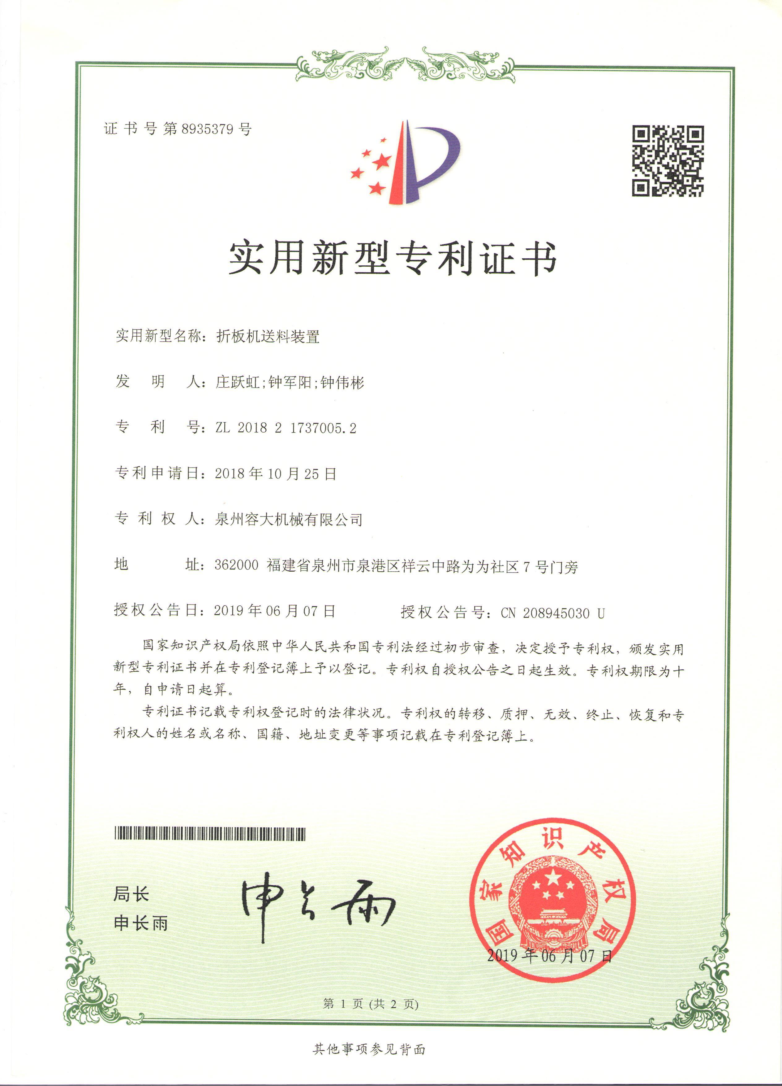 您的位置: 泉州容大機(jī)械有限公司 > 專(zhuān)利證書(shū) > 剪板機(jī)送料裝置