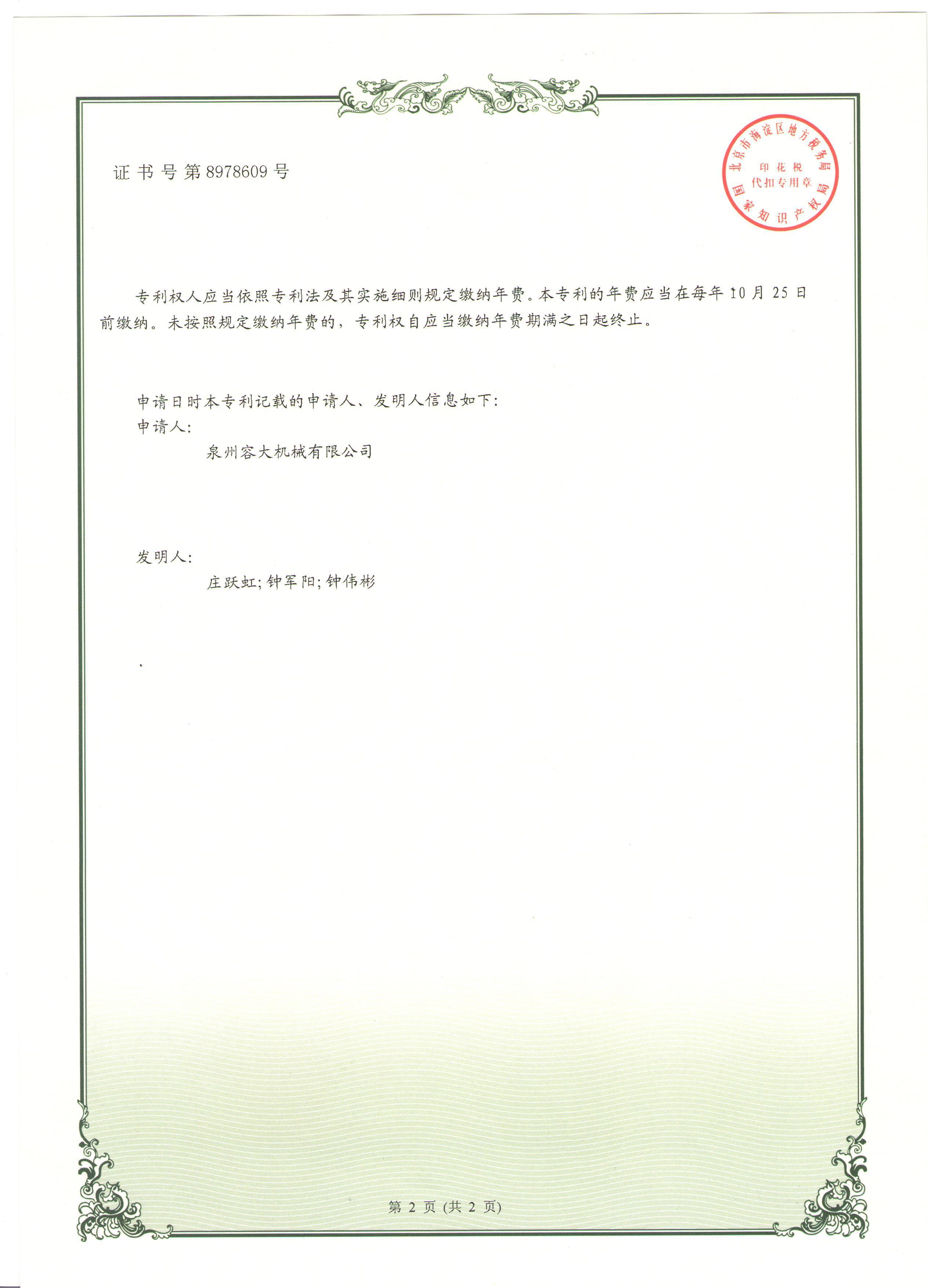 您的位置: 泉州容大機械有限公司 > 專利證書 > 多功能修整機